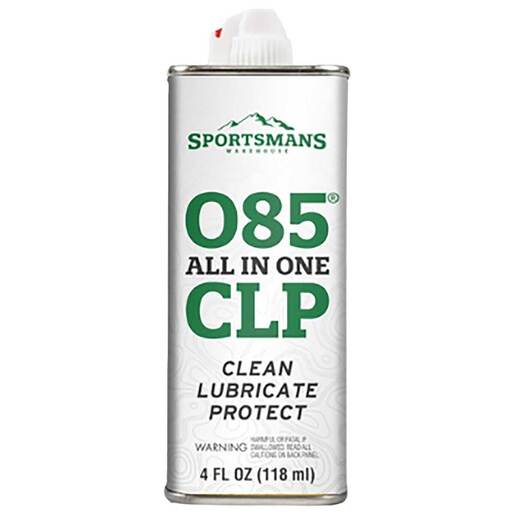 Sportsman's Warehouse O85 All in One CLP - 4oz - This uses advanced engineering to penetrate tight spaces and create a thin film that stops rust and corrosion for long-lasting protection. Features Cleans, lubricates and protects in one advanced formula Removes carbon, powder residue and fouling from metal surfaces Penetrates into tight areas to reduce surface friction A thin film seals out moisture to prevent rust and corrosion
