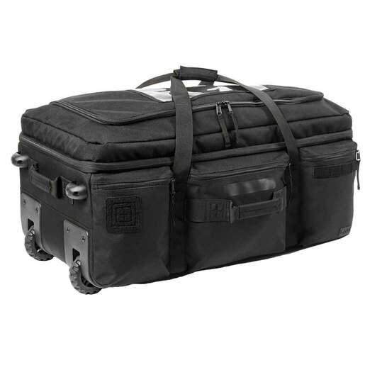 5.11 Tactical Mission Ready 3.0 9L Range Bag - The Mission Ready 3.0 by 5.11 Tactical is a dependable rolling duffel bag that provides exceptional durability, flexibility, and value, making it a necessity for law enforcement officers and outdoor enthusiasts. This bag is designed for those who demand quality and functionality in their gear. It features upper and lower compartments, side pockets, and a flat document pocket, ensuring you stay organized during travel or on duty. Additionally, the Mission Ready 3.0 rolling duffel is moisture and weather-resistant, built to keep your essentials secure in various conditions. Constructed to withstand up to 150 lbs, this duffel bag ensures your belongings stay safe and protected. It incorporates fiberglass rods in the side panels, providing support and maintaining the bag's shape when loaded. Skid rails and an impact-resistant bottom base panel contribute to the durability and longevity of the Mission Ready 3.0 duffel bag. Organization is at the forefront of the Mission Ready 3.0 design with easy access to the main compartment and a separate top compartment with optional roll-away dividers. Four external zippered pockets, three internal pockets, and a light-colored interior lining make it easy to find and store items. Further convenience is provided by the retractable handle, self-retracting grab handles, and removable webbing strap for secure tethering to other 5.11 Tactical luggage or bags. The Mission Ready 3.0 is also lockable, with YKK zippers, and made from water-resistant 1050D nylon and 1680D ballistic nylon for ultimate protection. With a total capacity of 5514 cubic inches or 90 liters, this rolling duffel bag is perfectly suited for your next mission. Clear vinyl document storage pocket and business/ID card holder Retractable handle and self-retracting grab handles 4 external zippered pockets with name tape and morale patch holders Three internal pockets and light-colored interior lining Dedicated top compartment with optional roll-away dividers for top loader access to the main compartment Internal fiberglass rods allow for easy loading and the bag to stand on its end or compact storage when removed Impact-resistant bottom base panel Removable webbing strap with buckle included for tethering additional 5.11 luggage or bags Lockable YKK zippers Water-resistant 1050D nylon and 1680D ballistic nylon Dimensions: Overall Dimensions - 13.0"H x 28.75"L x 15.875"D Main Compartment - 10.25"H x 28.75"L x 15.875"D Top Compartment - 2.75"H x 28.75"L x 15.875"D Front Pockets - 10.25"H x 7.25"L x 0.875"D, 10.25"H x 11.25"W x 0.845"D Total Capacity - 5514 cubic inches / 90 Liters Weight - 14.0 lbs