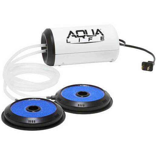 Frabill Aqua-Life Dual Output Aerator - Keeping bait alive and accessible is mission critical. Frabill is the leader in bait management systems and offers an expanded line of live bait containers, aerators, traps, tools, and accessories. Whether you're fishing inland or offshore-using minnows, mullet, crayfish, leeches, or crawlers-Frabill has everything you need to be armed and ready for the day. Specifically designed and tested to keep saltwater baitfish healthy and active, these pumps can convert any size cooler or live well into an oxygen-rich aquarium. Includes: Aerator, flexible air hose, dual weighted air stones, T-connector, two anti-siphon valves, 6-foot power cord Tangle-free netting prevents hook snags UL approved