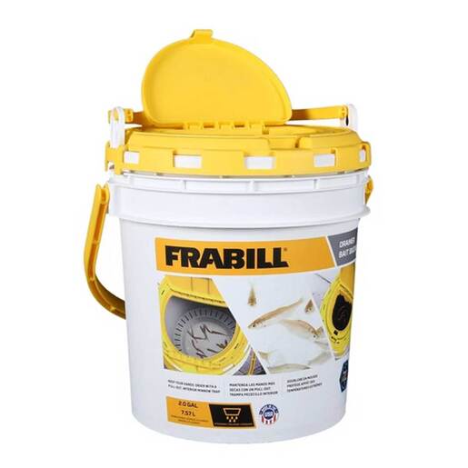 Frabill Drainer Bait Bucket - Who can ever pick just one kind of bait? Now you don't have to. This durable bucket features an interior tray to keeps hands dry while handling minnows. In the lid, a second built-in compartment holds worms or other bait. Twice the bait storage means twice the catches. Pull-out minnow trap keeps hands dry Built-in lid compartment for worms or other bait