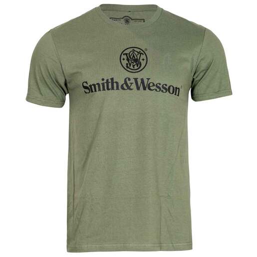 Smith & Wesson Men's Logo Short-Sleeve Casual Shirt - Designed for all-day comfort, this shirt is perfect on or off the range. Bold S&W logo on the front Crew cut Tagless for comfort Style: A1909