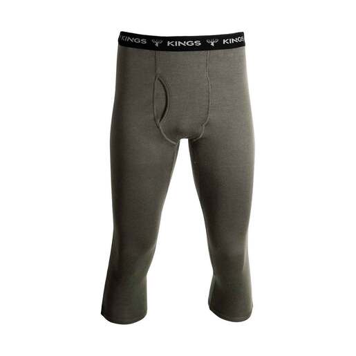 Kings Camo Men's Olive XKG Foundation 260 Zip Off Merino Bottoms - The XKG Foundation 260 Zip Off Merino Bottom is a versatile midweight base layer that is easy to take off and put on - never slowing you down and keeping in the game. 19.5 Microns and 260 Gram knit makes these bottoms lightweight, but the small, tightly sewn fibers of merino wool keep you warm in colder conditions. With a high heat to weight ratio, you can rely on comfortably hiking without the fear of over-sweating. We added a full-length zipper on each leg for easy removal when out in the field. Each leg is only three quarter length to stop just short at the top of your boot for easier removal. Never take your boots off again when the temps begin to rise. Simply pull down your outer layer, zip off merinos, pull pants back up, and keep hunting. Elastic waistband and flatlock stitching create a streamlined look and no-itch feel. And, the natural fiber qualities of merino prevent odor growth after long days in the field. The Merino bottom comes in Olive and is the foundation layer bottom for your XKG system. 90% Merino Wool 10% Nylon Moisture Wicking Quick Dry Flatlock Stitched Seams Natural Odor Control Ultra Breathable No Itch Comfort Excellent Warmth to Weight Ratio Elastic Waistband 3/4 Length Only weighs 7 oz. Style: XKG4104
