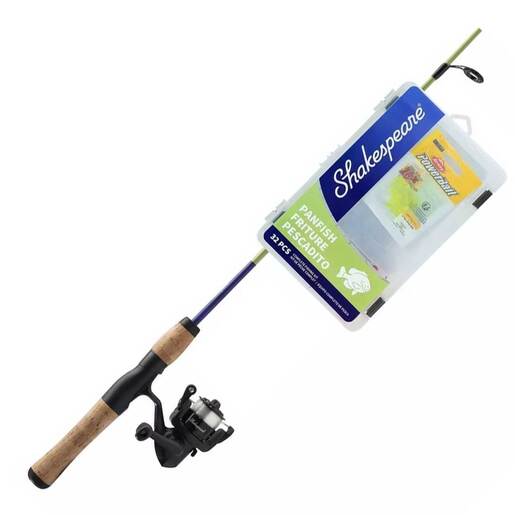 Shakespeare Catch More Fish Panfish Spinning Combo - With a Shakespeare Catch More Fish combo, anglers will have everything they need to enjoy a day on the water pursuing panfish. In addition to a Shakespeare rod and reel, the combo includes Berkley branded bait, assorted tackle, and is pre-spooled with 4 LB Stren® monofilament fishing line. Contents: 10-Berkley PowerBait Power Grubs 2-Spinner Grubs 2-Jig Heads 10-Hooks 5-Split Shots 3-Bobbers 1-Rigging guide
