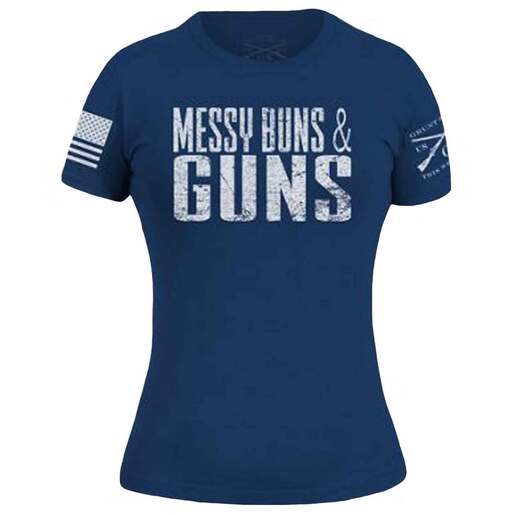 Grunt Style Women's Messy Buns and Guns Short-Sleeve Casual Shirt - There s no better way to show your American pride than sporting your favorite shirt from Grunt Style. Crafted with 100% combed ring-spun cotton for soft all-day comfort Tagless itch-free design Ribbed collar that won t lose its shape Style: GS2855