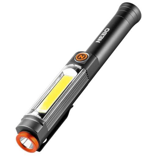 NEBO Franklin Taskbar LED Flashlight and Worklight Combo - The FRANKLIN TASKBAR outputs 500 lumens with the C•O•B work light and 200 lumens from the top flashlight. The red C•O•B light is perfect for distress signaling or roadside emergencies. The steel clip and magnetic base provide convenient hands-free lighting options. Features Fully dimmable Direct-to-Red Feature Memory Power Setting Anodized aircraft-grade aluminum; water and impact-resistant Steel belt/pocket clip Powerful magnetic base Light Modes Flashlight high (200 lumens) - 8 hours / 75 meters Flashlight low (60 lumens) - 24 hours / 50 meters Work light high (500 lumens) - 2.5 hours / 31 meters Work light low (150 lumens) - 14.5 hours / 18 meters Red light high (40 lumens) - 20 hours / 7 meters Red light low (12 lumens) - 32 hours / 1 meters Red strobe - (40 lumens) - 40 hours / 7 meters