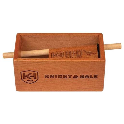 Knight & Hale HD Cutter Push and Pull Turkey Friction Call - The HD Cutter Push/Pull Call is the perfect call to add to your arsenal if you're looking for simplicity, consistency, and convenience. This is one of the easiest calls to use; you only need one finger to create authentic yelps, clucks, cuts, and purrs, making it ideal for turkey hunters of any skill level. This friction call is a great closing call whose sounds will resonate even when it's windy. See our technique tips below. Features Call type: Push/pull call Body material: Cherry Handmade in the U.S.A. Technique Yelp: Use finger to push the dowel 5 to 10 times with 1in strokes. Cluck: Push the dowel using quick 1/4in single taps. Cut: Push the dowel 3 to 5 times in quick succession using short 1/4in strokes. Purr: Slowly push the dowel in one 1-1/2in stroke with your index finger. Fighting Purr: You'll need 2 HD Cutter Push/Pull calls for this. Hold 1 call in each hand and alternate pushing the dowels with your index fingers.