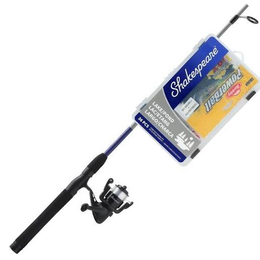 Shakespeare Catch More Fish Lake Pond Spinning Combo -With a Shakespeare Catch More Fish combo, anglers will have everything they need to enjoy a day on the lake/pond. In addition to a Shakespeare rod and reel, the combo includes Berkley branded bait, assorted tackle, and is pre-spooled with 6lb Stren monofilament fishing line. Contents: 5-Berkley® PowerBait® Shaky Worms 5-Berkley® PowerBait® Power Grubs 2-Spinner Grubs 7-Grubs 3-3/0 Worm Hooks 5-Bream Hooks 3-Jig Heads 2-Bobbers 5-Split Shots 1-Rigging guide