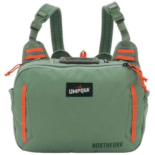 Umpqua NorthFork Chest Pack - Designed for your Best Day on the Water. The NorthFork Chest Pack keeps all your gear up high for easy access and deep wading. Pockets for fly boxes, leader & tippet, indicators, and more. Everything you need for a comfortable and productive day on the water. Spacious main compartment: holds up to 4 full-sized fly boxes Secondary compartment: accommodates 2 full-sized fly boxes Internal pockets: organize leaders, tippet, indicators, and more Net slot: easy access slot for your fishing net External fly patch: for quick access and fly drying Additional stretch pockets: easy-access storage options Proprietary VersiLoop Accessory Attachments: compatible with Umpqua's 6pc accessory line Style: 35294