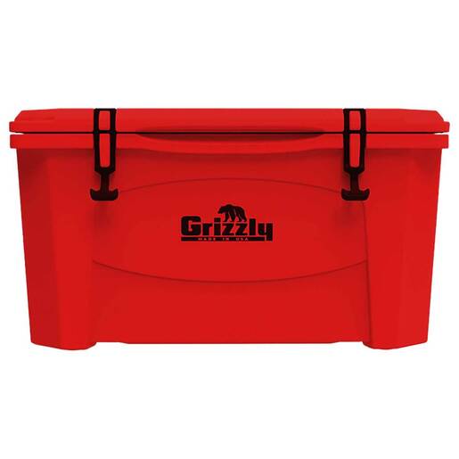 Grizzly 60 Quart Hard Cooler - The Grizzly 60 Cooler is the perfect outdoor cooler to accompany you and your crew on a week’s worth of epic adventures. Leave no snack behind when you’re working with 60 quarts of space for food, drinks, and ice. The G60 is a 60 qt cooler equipped with a silicone rubber gasket to keep cold air trapped, extending the longevity of your ice. Its pressure-injected insulation is stronger and more durable than foam, while also being lighter. And, its Rototough construction makes it rot-proof, dent-proof, and leak-proof. Meanwhile, tie-down slots help secure your cooler in your truck, boat, or UTV. At the end of your journey, the 2in drain plug allows quick and complete draining of your cooler. Features Made in the USA 60-quart cooler capacity 30 lbs empty RotoTough rotationally-molded construction Environmentally friendly pressure-injected insulation Molded-in hinge with stainless steel pin 2in drain plug for easy, quick draining Full-length drain channels for complete draining BearClaw Latches require no hardware and keep a secure grip Non-slip non-marking rubber feet Molded-in heavy-duty handles Rope handle with nylon sleeved rubber handle 2in tiedown slots Embossed ruler on lid Rubber gasket makes a perfect seal Manufacturer Lifetime warranty IGBC certification number 3359 The Grizzly 60 Cooler holds up to 72 cans with 20 pounds of ice.