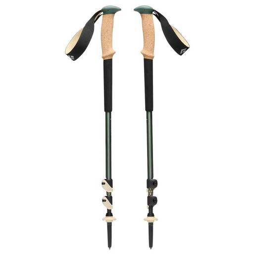 Black Diamond Trail Cork Trekking Poles - Pair - The Black Diamond Trail Cork is built for 4-season versatility and expertly balances comfort, features and durability. The premium 100% natural cork grip is designed for ultimate comfort, while the dual FlickLocks offer complete adjustability to suit the terrain. Comes with snow baskets for shoulder season trail conditions. Features 7000 Series Aluminum Shafts Soft-touch grip top with 100 percent natural cork grip and EVA foam grip extension Lined Variwidth Comfort Strap FlickLock adjustability 4 season flex tips with both trekking and snow baskets included Usable length: 100-140cm