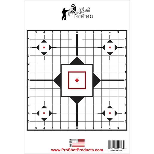 Pro-Shot 9in x 13in Sight In Target with Adhesive Backing - 6 Pack - Range Series plastic targets new pro-shot range Series plastic targets are great for any and all conditions in the field. Made of thin plastic, these targets are equipped with strips of adhesive for convenience as well as packaged in resalable bags. These targets can be wadded up, get wet, and take abuse before being used. Self-Adhesive strips on top and bottom of target back, make this target great for use at indoor/outdoor ranges Weatherproof; damp or wet situations will not affect this target Packaged in Zip Top Bags Made in USA