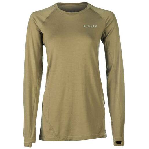 Killik Women's Merino Long Sleeve Base Layer Shirt - Built strong enough to withstand the harsh wilderness and comfortable for the journey out there. So Versatile! Wear as a base layer or as a casual mid or outer layer. Best of all, it's covered by the Killik Guarantee! Merino wool Killik brand on left chest Thumb hole Lightweight Style: KILWSMBT