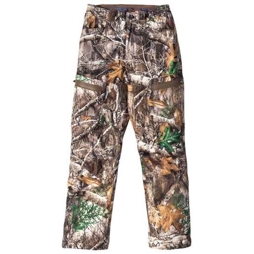Rustic Ridge Youth Realtree Edge Insulated Rain Hunting Pants - When the weather drops, the hunt don't stop. These insulated, waterproof hunting pants are made for comfort all season long. 100% Waterproof seam sealed Windproof Scent-Stop anti-microbial combats the growth and spread of bacteria Ultraquiet brushed tricot fabric 100g insulation for cold weather conditions Stain resistant Dries quickly Retains softness Breathable Water resistant Two zippered side cargo pockets Side leg zippers for easy on and off Interior gripper waistband Style: K21-P339-RTE
