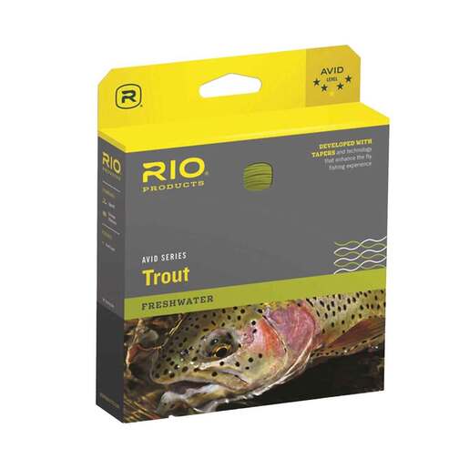 Rio Avid Trout WF Floating Fly Fishing Line - An all-purpose trout line with an easy casting taper. The supple, self lubricating coating is incredibly slick and features AgentX technology for that little bit of extra distance. The front-loaded taper casts all fly sizes with ease and delivers excellent turnover and presentation. The line is slightly heavier than the AFTMA standard and allows casters to feel the rod load - especially useful on modern, faster action rods. A welded loop on the front end allows for easy rigging. RIO Avid Trout WF Fly LineAgentX Technology Front-End Welded Loop Designed for easy casting performance Slightly heavier and shorter head lengths Supple, self-lubricating coating is incredibly slick Excellent turnover and presentation