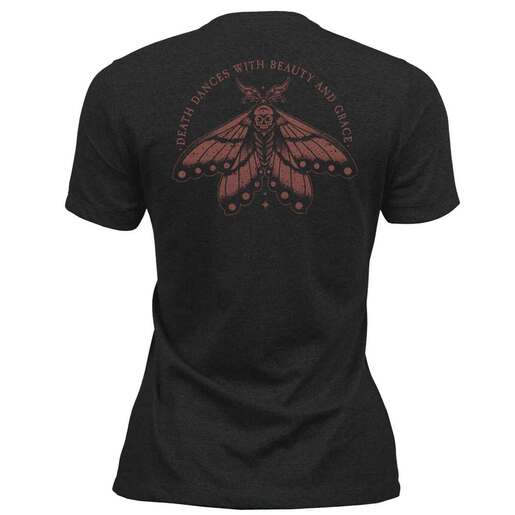 Nine Line Women's Death Moth Short-Sleeve Casual Shirt - Regarded around the world as a symbol of Death, Change, and Rebirth… the nocturnal Death’s Head Moth Dances through the night skies with Beauty and Grace! Relaxed fit Logo on front left chest Crew neck Style: DMOTH
