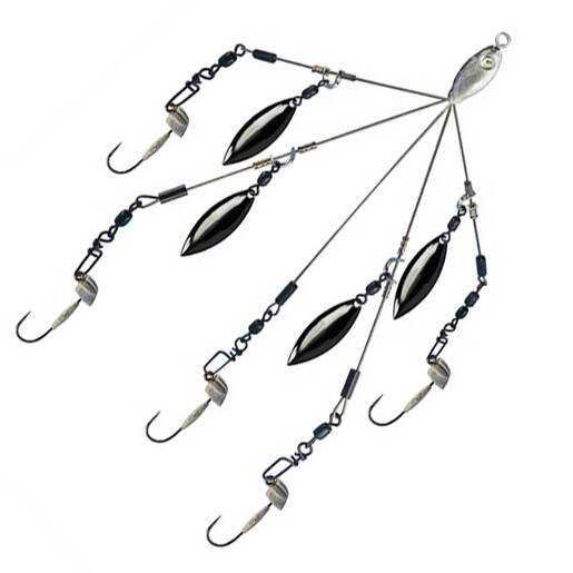 Picasso Lures Micro Rig Bait Ball Umbrella Rig - The Picasso Micro Rig is constructed with a lightweight .024in heat-treated wire designed when a small profile is needed to draw strikes from finicky bass. This rig wont “wear you out” and can be easily thrown with a medium heavy casting or spinning rod. Recommended line 10-12 lb fluorocarbon. Ideal for use with forward- facing sonar when targeting suspended fish that are feeding on smaller baitfish The lightweight high-impact resistant plastic head and embedded nose swivel prevent line twists Small willow blades are perfectly sized to provide flickering flash to attract the fish and reduce lift. Micro rig heads equipped with Gamakatsu hooks.