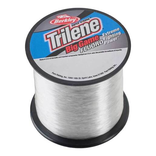 Berkley Trilene Big Game Fluorocarbon Fishing Line - Trilene Big Game is one of the most popular line families in North America due to its incredible strength, reliability and value. Big Game Fluorocarbon is 100% fluorocarbon is virtually invisible, sensitive and manageable. 100% fluorocarbon won't absorb water so line maintains its strength and sensitivity when fishing! 100% fluorocarbon for all the fluorocarbon benefits of near invisibility, fast sinking and great wet strength Sensitive and abrasion resistant Good manageability, knot and impact strength
