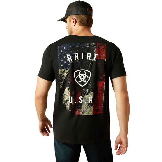 Ariat Men's Faded Bull Short-Sleeve Work Shirt - Rep your favorite country and your favorite brand with this soft, everyday staple. Crafted from soft 100% cotton, it brings bold Ariat style to any casual look. Perfect for everyday wear with a familiar, easy fit USA grown cotton Large Ariat graphic on the back Style: 10062429