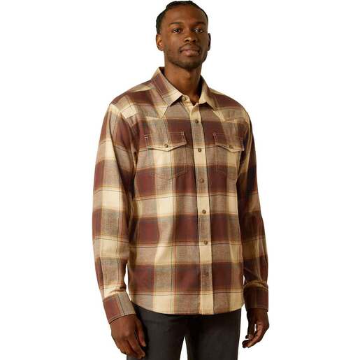 Ariat Men's Hudson Retro Fit Long Sleeve Work Shirt - These Retro shirts tip their hat to cowboy heritage with pearl snaps and Western styling. Comfortable and versatile, they're ready for wherever the day (or night) takes you. Ariat branding details Snap-front closure Double-snap adjustable cuffs with extended snap detail make it easier to roll up your sleeves Hidden pen slot in left pocket Two chest pockets with flaps and snap closure Slim fit through the body, with enough length for tucking Garment is prewashed to minimize shrinkage Style: 10062221