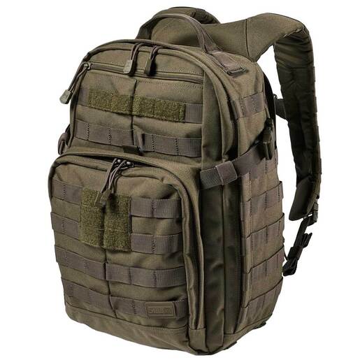 5.11 Tactical RUSH 12 2.0 Backpack - Ranger Green - 5.11 Tactical kept the best parts of the original RUSH12 and upgraded other areas to create one of the most universally adaptable packs on the planet. 5.11 Tactical added a hidden CCW compartment, given the eyewear pocket more room, incorporated a padded laptop sleeve, and moved the hydration tube ports to the rear for more versatility. From outdoor activities to duty applications to office use, you won’t find a pack that has a little of everything in all the right places like you will with the RUSH12 2.0. 5.11’s signature Center Line design Front lower pocket with internal slip and zippered pockets Built from high strength, water-repellant 1050D nylon Front top zippered pocket External front and side web MOLLE with 6x1 name tape and 3x3 loop Fleece lined eyewear/media pocket Padded laptop sleeve and dual mesh pockets in main compartment Hidden CCW compartment with loop panel Rear hydration compartment Contoured yoke shoulder strap system with web MOLLE Bottom panel web gear loops Fits up to a 15in laptop DIMENSIONS Main Compartment - 18in x 11in x 6.5in Bottom Front Pocket - 12in x 9in x 1.75in 1.5 Hydration Pocket - 16.5in x 10in Total Capacity - 1,476 Cubic inch / 24 Liter Weight - 3.15 lbs