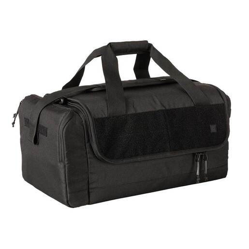 5.11 Tactical Range Ready Trainer Bag - Black - The Range Ready Trainer Bag has space to hold everything you need for a day at the range. Fully padded with a PE board base to keep your gear safe while the removable dividers let you customize the bag. Internal quick access elastic mag and accessory panel as well as elastic loops under the lid give you the ability to carry loaded anywhere you go and that's just the main compartment. Three side compartments and MOLLE webbing let you take even more. Imported. FEATURES: Large loop front panel for patches/ID Fully padded construction with PE board base Left side pull down pouch with internal org, name tape Right side external web MOLLE Dual rear zippered pouches Top carry handle, removable shoulder strap Quick access front internal elastic mag/accessory panel Internal removable dividers and elastic bands Underside lid elastic bands YKK lockable zippers 600D Polyester DIMENSIONS: Measurements: 10in H x 21in L x 14.5in D Total Capacity: 3051ci Volume: 50 L Weight: 4.3lbs