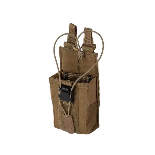 5.11 Flex Radio 2.0 Pouch - Kangaroo - Your radio is an essential piece of gear, which is why we upgraded the original to the new Flex Radio Pouch 2.0. The magnetic Fidlock adjuster and 3mm bungee cord with Hypalon pull ensure the kind of access and retention required to stay in touch during long and strenuous shifts. The 2.0 version also includes internal non-slip webbing to reduce movement and provide additional retention. Dual layer stretch woven half-side panels expand for mic attachments, while our FLEX-HT Mounting System makes mounting a cinch. Features: 3mm bungee cord & magnetic Fidlock adjuster for retention Side stretch panels for flexibility with mic attachments Internal non-slip webbing reinforcement Hypalon pull withloop back to secure position Flex-HT™ ½" stacked webbing on back for mounting versatility Flex-HT™ ¾" TPU coated straps for easy weaving to all platforms TPU coated straps are more durable & waterproof Drain hole on bottom panel 500D Nylon Duraflex G.C. snap