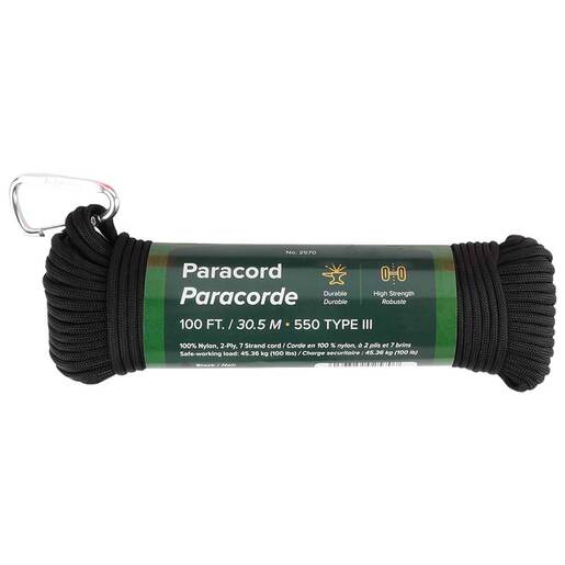 Coghlan's 100ft Paracord - Great for survival bracelets, shelter building, gear repair, snares, traps, and more, this cord is a must-have product for campers, hunters, survivalists, and backpackers. The Type III, commercial grade, 550 cord features seven individual inner core strands. Adding strength, these strands can also be used separately for any number of things, such as sewing thread or as a fishing line. Features Resistant to rot and mildew Diameter: 0.15 in. (4 mm) Safe working load: 100 lbs. 500 lb. break strength