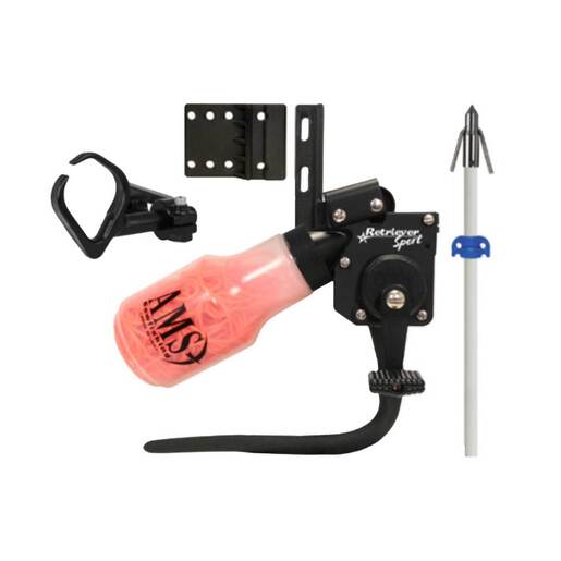 AMS Bowfishing Retriever Sport Bowfishing Combo Kit - No more guesswork. This, AMS Bowfishing brand, combo kit has everything you need to outfit your bow for bowfishing. It is a collection of the favorite gear used by bowfishers across the world. AMS is known for time-tested, quality, hassle-free gear. Grab this kit, simply install it to your bow and start chasing fish! All Products are Made in the USA. FEATURES: AMS ZIP ARROW REST: The Zip rest is a simple yet functional arrow rest. Just snap the arrow in from the side or load through the center. Composite material ensures minimal wear on the arrow shaft. The Zip Rest can be used by right- or left-hand shooters. MUDCAT ECONOMY SERIES FISH BUSTER ARROW: The MudCat arrow is a solid fiberglass shaft with Fish Buster point and AMS EverGlide Safety Slide System installed. Fish Buster point is fully machined from high-grade stainless steel Barbs pivot to the side to hold the fish with a .93in x .875in holding area. Turn tip to release fish Standard 1/4x28 thread Made in the USA RETRIEVER SPORT BOWFISHING REEL: Unlike most other reels, Retriever reels are always ready to shoot. They’re always in free-spool mode. Just draw and shoot! The line is stacked in a bottle rather than wound on a drum or spool so there is no drag on the line when it’s shot. The line freely spools out of the bottle on the shot and on the retrieve just stacks right back in. Just pull a lever with the index finger of your bow hand to retrieve. Machined brass gears, stainless steel hardware and corrosion resistant housing ensure long life in fresh or saltwater. Retriever reels are built to take the abuse of bowfishing and will stand the test of time! The Retriever Sport has a gear ratio of 3:1 which allows 17” of line to be retrieved per crank. Twenty-five (25) yards of 200# test braided Dacron line is installed. Because safety is paramount, every Retriever includes an AMS EverGlide Safety Slide tied to the end of the line. Never tie your line to the tail of an arrow (regardless of reel used)! Use the AMS EverGlide Safety Slide on every arrow, every time! Mounts your reel directly to the sight holes on your bow and allows you to mount in 4 different locations depending on personal preference. Milled out slots on the mount plate also allow slight up and down adjustment. This rubber sleeve adds comfort to the trigger. But, more importantly, it’s a safety device to lengthen the trigger to prevent line from entangling with it. ARROW SHAFT: Each and every AMS branded arrow is inspected for straightness. Our shafts are glossy smooth, extremely straight and ultra-durable. Points are pinned to the shaft for more security. Each arrow shaft is 5/16in diameter and 32in in length. An EverGlide Safety Slide is installed on every arrow. INCLUDES: AMS Retriever Sport Bowfishing Reel – Right Hand Adjustment spacer with 4 different mounting locations 25 yards 200# Test Braided Dacron Line Trigger Guard AMS EverGlide Safety Slide Mounting Hardware AMS Zip Arrow Rest MudCat Fish Buster Complete Arrow