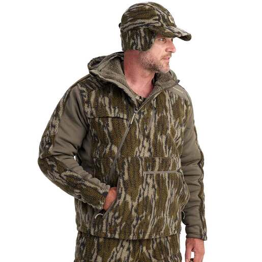 Nomad Men's Mossy Oak Bottomland Cottonwood VX3 Hunting Jacket - The updated Nomad Men's Cottonwood VX3 Jacket is a late season bow hunters dream kit. The Jacket delivers exceptional warmth from the whisper quiet high pile berber fleece exterior and sherpa lined interior. The windproof membrane and DWR treatment cut those bone chilling gusts and light rain. High pile berber fleece Sherpa lined interior Wind proof membrane to keep the cold out 4-way stretch for enhanced mobility Zippered sherpa lined exterior kangaroo pocket 2 zippered sherpa lined front hand pockets Vertical sherpa lined left chest pocket 3 piece adjustable hood Safelty harness port on upper back 100% polyester Style: N4000100