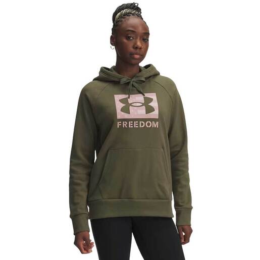 Under Armour Women's Freedom Rival Fleece Casual Hoodie - UA Freedom's goal is to support and inspire the brave men and women dedicated to protecting us, every day. This hoodie is light, comfy, and super-soft. Ultra-soft cotton-blend fleece with brushed inside for extra warmth Front kangaroo pocket Ribbed cuffs & bottom hem Main body fabric engineered to reduce fiber shedding leveraging Under Armour's Fiber Shed Test Method 80% Cotton/20% Polyester Style: 6007923
