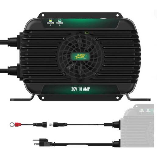 Battery Tender PowerPlus On-Board Battery Charger and Maintainer - The Battery Tender PowerPlus chargers provide increased power in a compact heavy duty package. Designed with a rugged, weather resistant exterior, this line of Battery Tender chargers is designed with Marine and Industrial applications in mind. This Charger provides a full charge to your battery setup before automatically switching to float mode maintaining proper voltage levels without overcharging. Designed to be used with Lead Acid, AGM, and Lithium (LiFeP04) batteries. Programmed with a Lithium wake up mode to safely restore the voltage of a deeply discharged battery. Charges & Maintains Golf Carts, RVs, Trolling Motor Battery Connect and Forget: With a low maintenance design, universal vehicle charger and maintainer is compact, lightweight, and easy to operate even in small storage space for your convenience