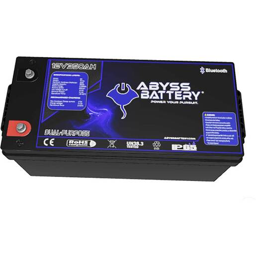Abyss Dual Purpose Lithium Marine House Battery withBluethooth - A high capacity performance Lithium-ion battery engineered with the strongest 200A BMS rating of its class. This battery is equipped with built in Bluetooth connection and ideal for off-grid living, energy storage applications, starting generators, and large outboard or diesel motors. Designed for powering Seakeeper systems, chill plates, microwaves, and A/C. This battery is a power house you can depend on. The module's inherent safety, extended cell life, and zero maintenance offers end users a more reliable battery alternative by performing with more than twice the run-time and