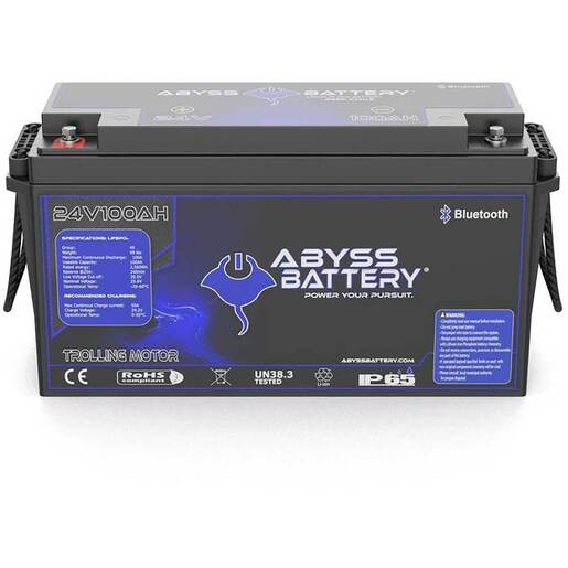 Abyss Lithium Trolling Motor Battery withBluethooth, 24V100AH -Swap your unreliable trolling batteries for a powerful ABYSS 24V 100Ah Group 49 Battery. This single lithium battery is compact, lightweight, and will free up storage space on your boat by replacing two 12 volt Lead-acid or AGM group 31 batteries in series. Whether you’re trolling in calm weather or fighting the wind, this battery will back you up even with load-heavy consumption. Ideal for deep cycle applications in diverse marine environments, seasons, and temperatures. Higher qualified Grade-A cylindrical cells UL1642, IEC62619, IEC62133 listed with Cycle life more than 3000 times and excellent consistency. Bluetooth Connectivity Monitor the battery status (charge, discharge, current, temperature, cycle life and so on) and change the data for different applications. Push Button Wake-Up/Reset Feature Located Conveniently on top of the battery case, this button allows for easy waking up or resetting of the battery, ensuring quick and effortless operation. Built-in Heating Uniform internal heating is an important feature of the cold-weather performance batteries, as many external heating blanket options currently available cannot sense the internal temperature of the cells and may not be completely effective at heating the battery throughout. Features proprietary technology that draws power from the charger itself, requiring no additional components. The entire process of heating and charging is completely seamless. Simply plug the battery into our lithium charger and the internal heating and monitoring system takes care of the rest. More stable and firm internal structure The cell holders within our battery protect and separate each cell to avoid any short circuit risks caused by intense vibration or impact. The separation and space created between each cell also improves the overall heat dissipation within the battery pack while charging and discharging.