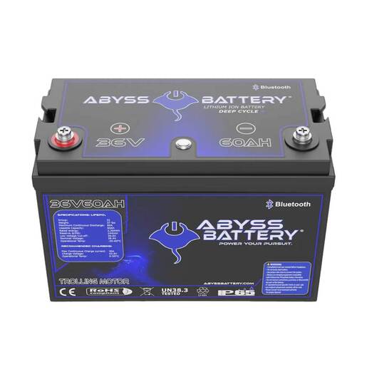 Abyss Lithium Trolling Motor Battery withBluetooth - 36V, 60Ah - This Group 31 lithium marine battery is compact, lightweight, and will free up storage space on your boat by replacing three 12 volt Lead-acid or AGM group 31 batteries in series. Higher qualified Grade-A cylindrical cells UL1642, IEC62619, IEC62133 listed with Cycle life more than 3000 times and excellent consistency. Bluetooth Connectivity Monitor the battery status (charge, discharge, current, temperature, cycle life and so on) and change the data for different applications. Push Button Wake-Up/Reset Feature Located Conveniently on top of the battery case, this button allows for easy waking up or resetting of the battery, ensuring quick and effortless operation. Built-in Heating Uniform internal heating is an important feature of our cold-weather performance batteries, as many external heating blanket options currently available cannot sense the internal temperature of the cells and may not be completely effective at heating the battery throughout. Our system features proprietary technology that draws power from the charger itself, requiring no additional components. The entire process of heating and charging is completely seamless. Simply plug the battery into our lithium charger and the internal heating and monitoring system takes care of the rest. More stable and firm internal structure The cell holders within our battery protect and separate each cell to avoid any short circuit risks caused by intense vibration or impact. The separation and space created between each cell also improves the overall heat dissipation within the battery pack while charging and discharging.