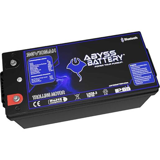 Abyss Lithium Trolling Motor Battery withBluethooth - 36V, 105AH - This single group 4D lithium battery is compact, lightweight, and will free up storage space on your boat by replacing three 12 volt Lead-acid or AGM group 31 batteries in series. Whether you’re trolling in calm weather or fighting the wind, this battery will back you up even with load-heavy consumption. Ideal for deep cycle applications in diverse marine environments, seasons, and temperatures for center console boats 39' ft and up. Our 36V 105Ah Lithium Trolling Motor Battery gives you a long and steady draw to last even for multi-day fishing trips. Just set it, charge it, and off you go. Higher qualified Grade-A cylindrical cells UL1642, IEC62619, IEC62133 listed with Cycle life more than 3000 times and excellent consistency. Bluetooth® Connectivity Monitor the battery status (charge, discharge, current, temperature, cycle life and so on) and change the data for different applications. Push Button Wake-Up/Reset Feature Located Conveniently on top of the battery case, this button allows for easy waking up or resetting of the battery, nsuring quick and effortless operation. Built-in Heating Uniform internal heating is an important feature of our cold-weather performance batteries, as many external heating blanket options currently available cannot sense the internal temperature of the cells and may not be completely effective at heating the battery throughout. Our system features proprietary technology that draws power from the charger itself, requiring no additional components. The entire process of heating and charging is completely seamless. Simply plug the battery into our lithium charger and the internal heating and monitoring system takes care of the rest. More stable and firm internal structure The cell holders within our battery protect and separate each cell to avoid any short circuit risks caused by intense vibration or impact. The separation and space created between each cell also improves the overall heat dissipation within the battery pack while charging and discharging.