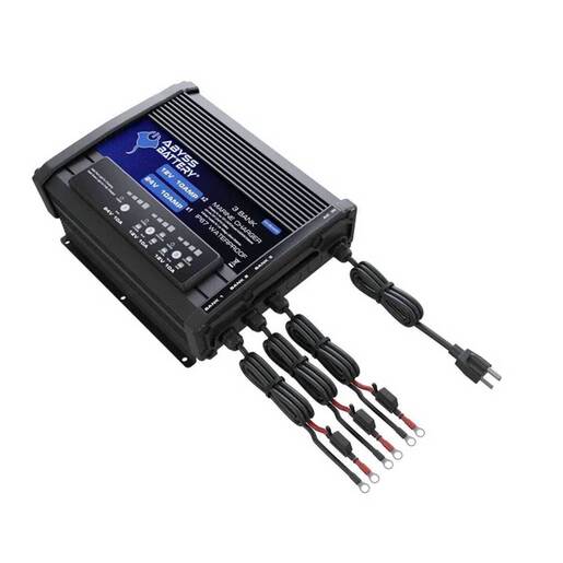 Abyss On-Board Marine Battery Charger - Introducing the all-new, 3 Bank On-Board Lithium Battery Charger, the ultimate solution for all your battery charging needs. Designed to cater to a broad spectrum of battery types and voltages, it offers an unmatched level of adaptability, ensuring your marine journey is uninterrupted and stress-free. 3 bank charger has been meticulously designed to infuse 10A of power into two 12V LiFePO4, Lead acid, or AGM batteries. A single 24V LiFePO4 with the simple selection of a mode.