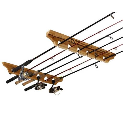 Rush Creek Creations Vertical/Horizonal Wall Mount Fishing Rod Holder - 6 Rod Capacity - Versatile and convenient, the 2-Piece Rod Wall Mount from Rush Creek is a favorite of fisherman everywhere! Not only is it super easy to install, but you can also choose whether it will display up to 6 rods in a vertical or horizontal position (allowing you to maximize your wall storage space). Best of all, the skip-peel finish and pine construction make it right at home on the lake. Kit Includes: (1) 2-piece wall-mount rod holder and assembly components. Rod rack measures 23.6in x 3in Instructions for assembly and care. Please Note: As with all log furniture, some cracking may develop during the log drying process. This natural occurrence adds to the unique look and appeal of your log furniture.