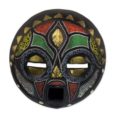 This elegant mask by Abdul Aziz Mohamadu is colorful and beautiful. Adorned with gleaming brass and intricately embossed aluminum it depicts a beloved daughter. Recycled glass beads in red yellow green and blue give the mask a festive air. These are...