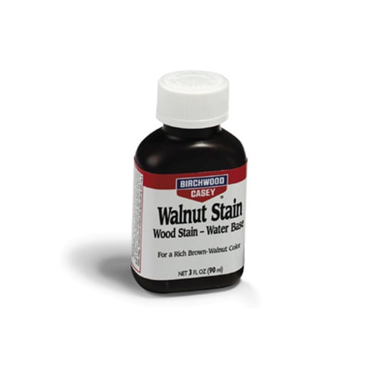 Birchwood Casey Walnut Stain - Water soluble stains are sun-fast, true to color and non-bleeding. Produces a clear, rich color without grain clouding or smearing. Highlights the grain and enhances the natural beauty of wood. Walnut Stain is a true, brown-walnut color for the traditional look. Color intensity is easily controlled by adding water to concentrate or using full strength for light colored woods such as birch. Water-soluble stain that is true to color. Easily thinned with water to reduce color intensity.