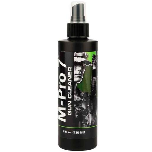M-Pro 7 Gun Cleaner Spray Bottle - 8oz - Keep you firearm in excellent working condition with the Hoppe's M-Pro 7 Gun Cleaner. It comes in a convenient eight ounce spray bottle. Manufacturer Number: 070-1005 M-Pro 7 gun cleaner Eight ounce spray bottle Removes carbon and fouling Odorless, non toxic and biodegradable Designed for high volume shooting and for long periods between cleanings