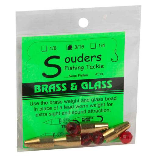 Souders Fishing Tackle Brass and Glass - Use the brass weight and the glass bead in place of a lead worm weight for extra sight and sound attraction.