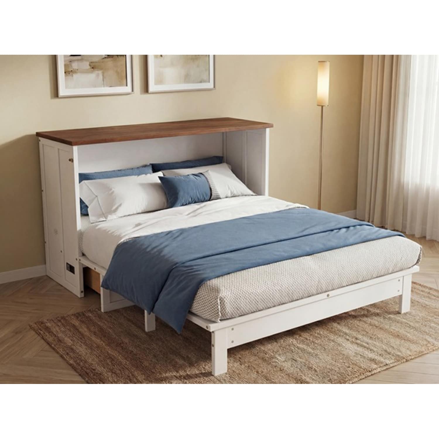 Farmhouse Murphy Cabinet with Foldable Panel,Solid Pine Murphy Bed Chest with Charging Station and Large Storage Drawer($1529.99Value)
