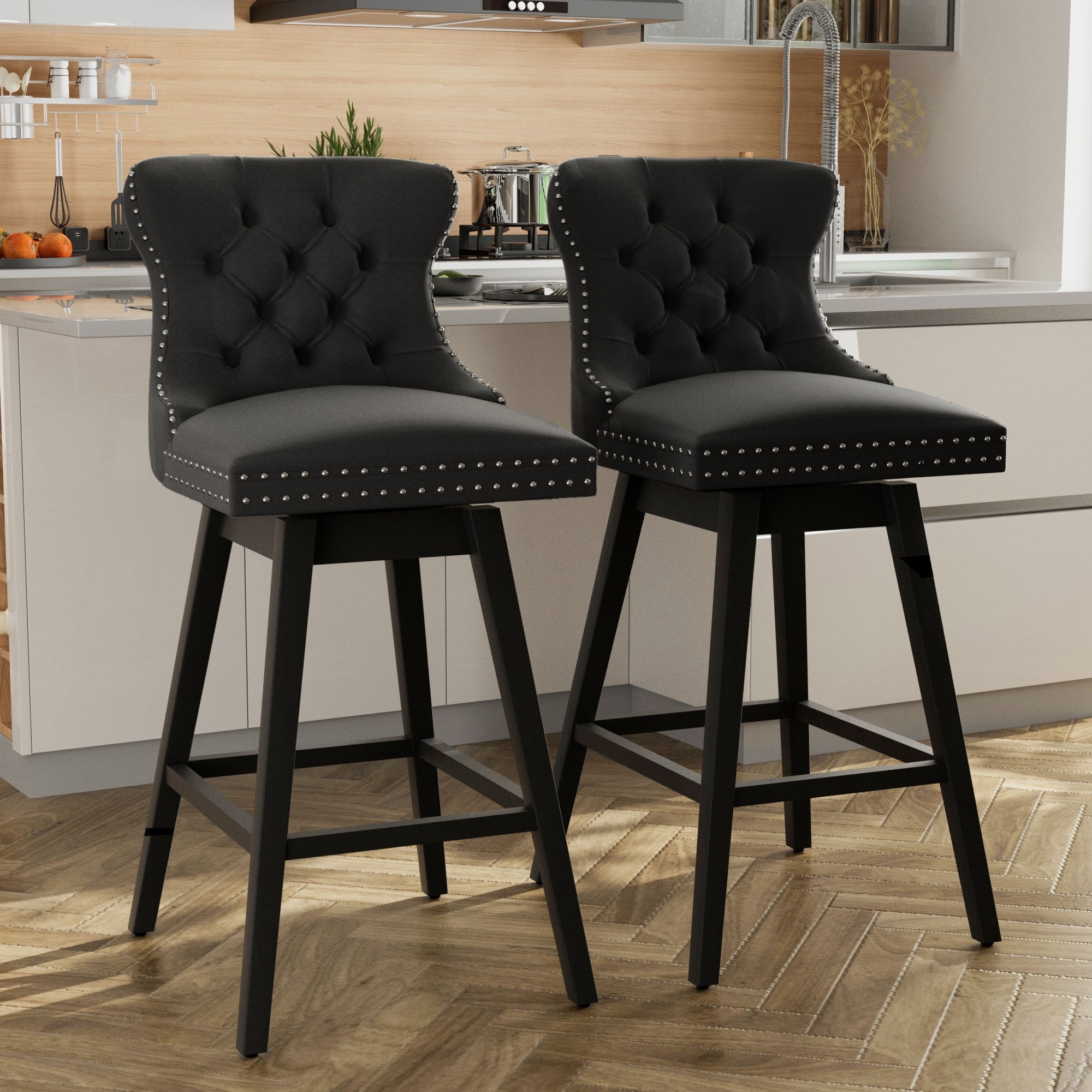 26"/30" Velvet Upholstered Swivel Counter or Bar Height Stools with Wood Frame($370.99Value)