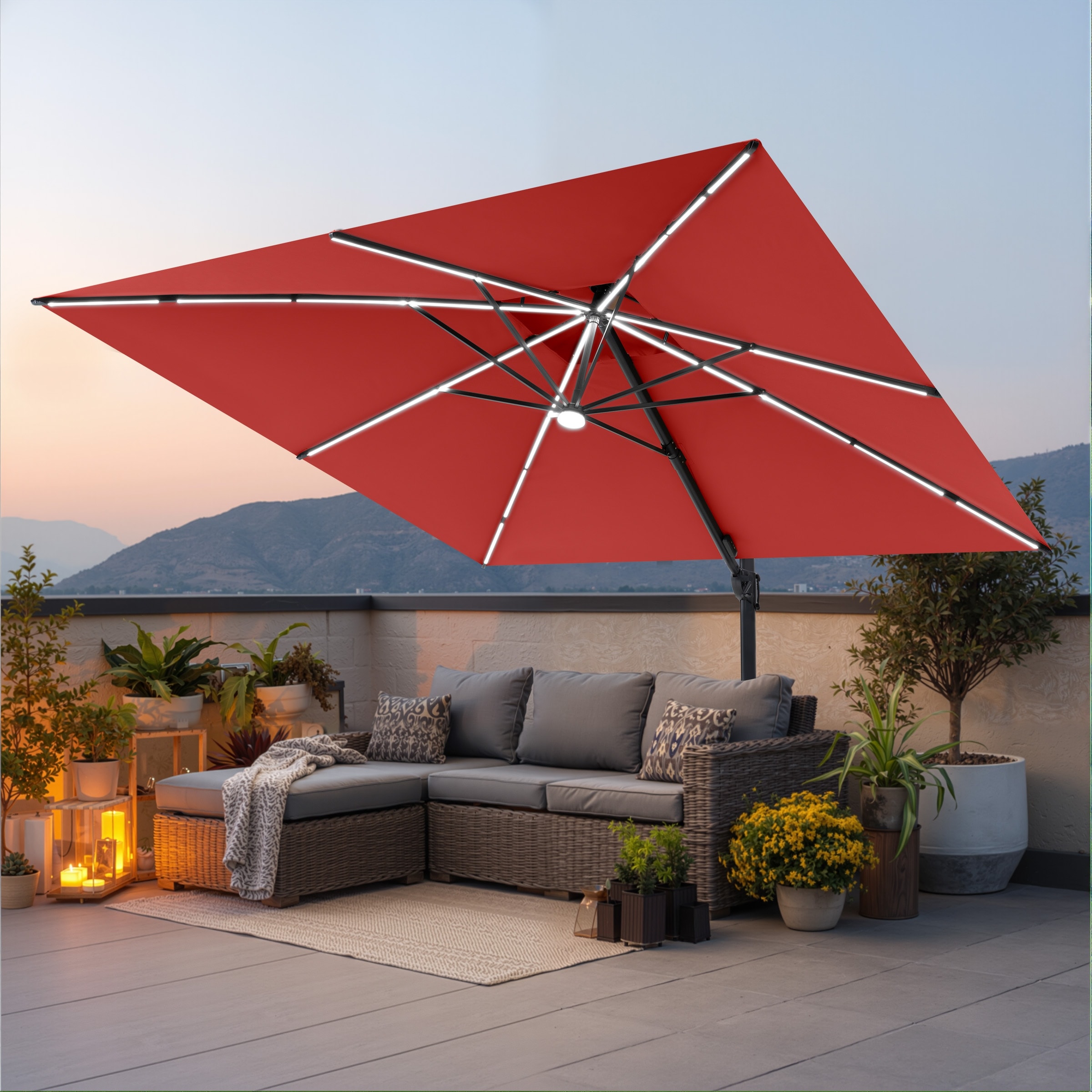 This 11x11 ft solar-powered cantilever umbrella not only provides excellent shade but also offers illumination at night. The double-layer canopy design enhances air circulation, while the crank handle allows for easy tilt adjustment.