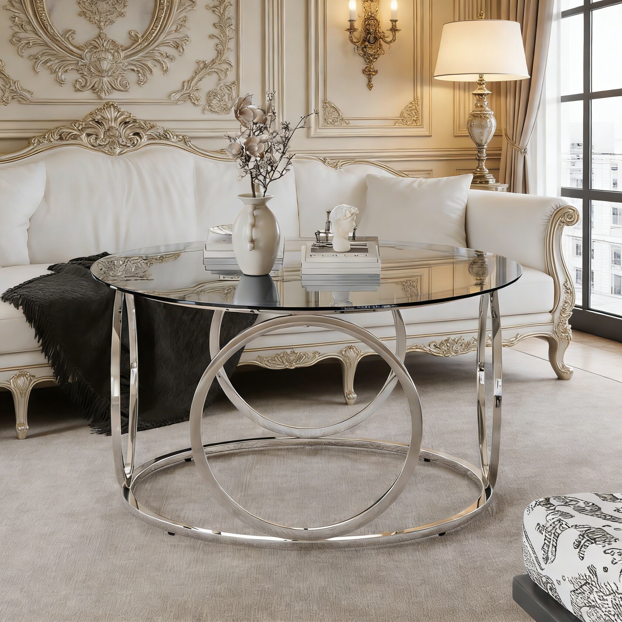 Product Features Sculptural Modern Aesthetic: Features an circular gold metal frame that doubles as a visual focal point—blending sleek minimalism with contemporary charm, perfect for modern, minimalist, or contemporary interiors.