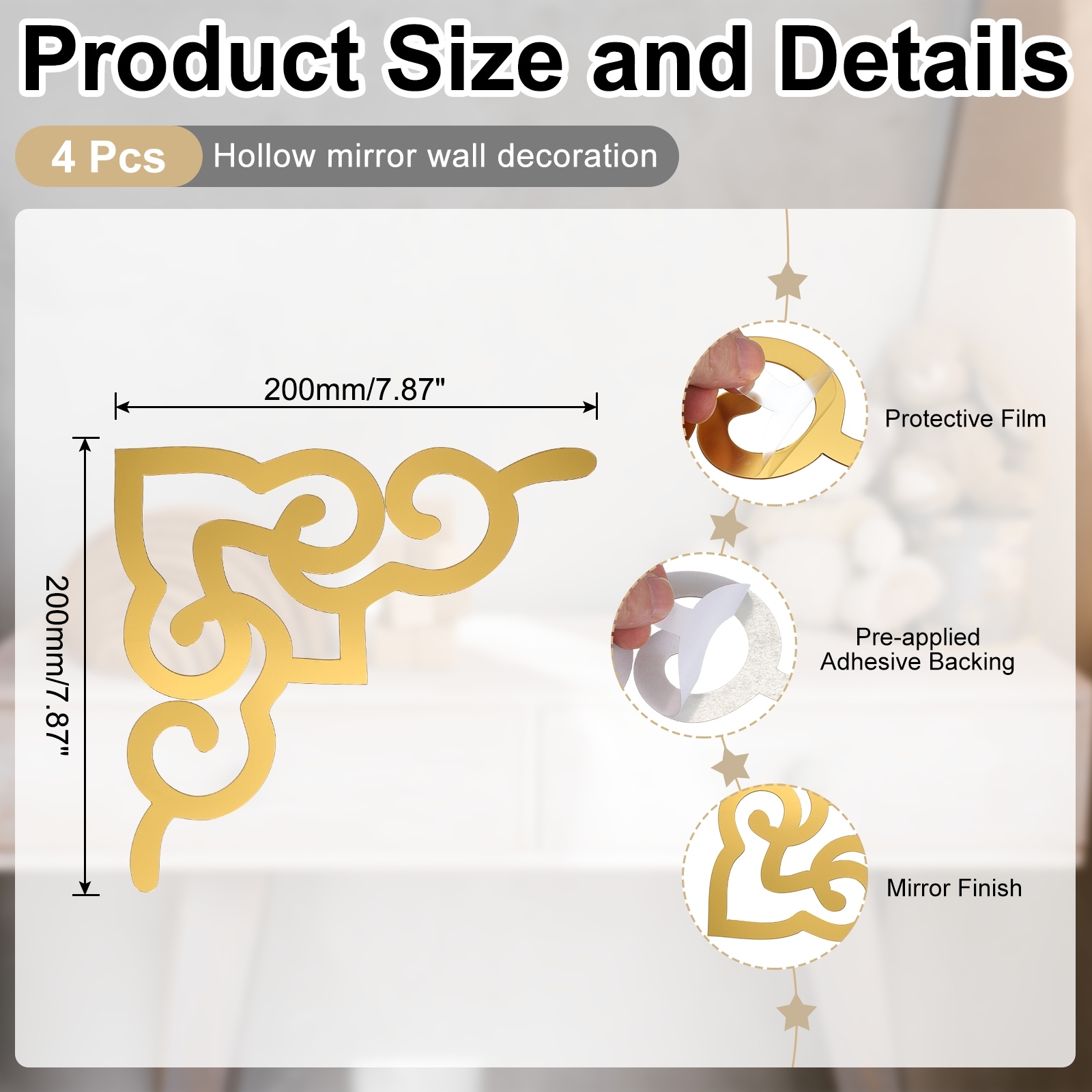 4 Pcs Hollow Mirror Wall Stickers (Silver Tone, 7.9 x 7.9")