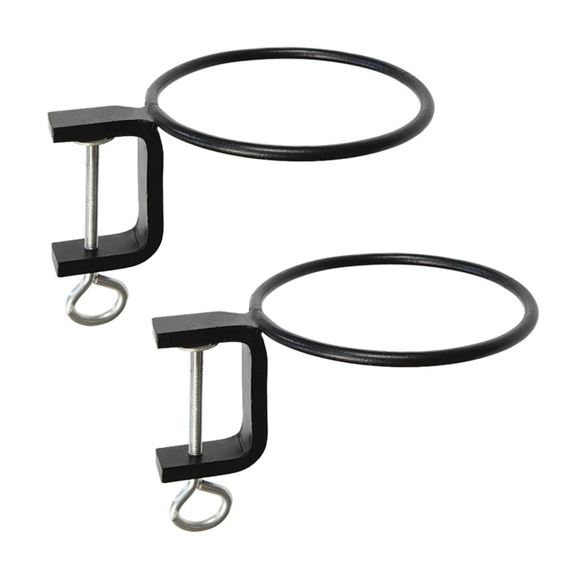 Achla Designs Set of 2 Clamp-On Flower Pot Holder Ring Brackets, 4 Inch Diameter, Black Powder Coat Finish