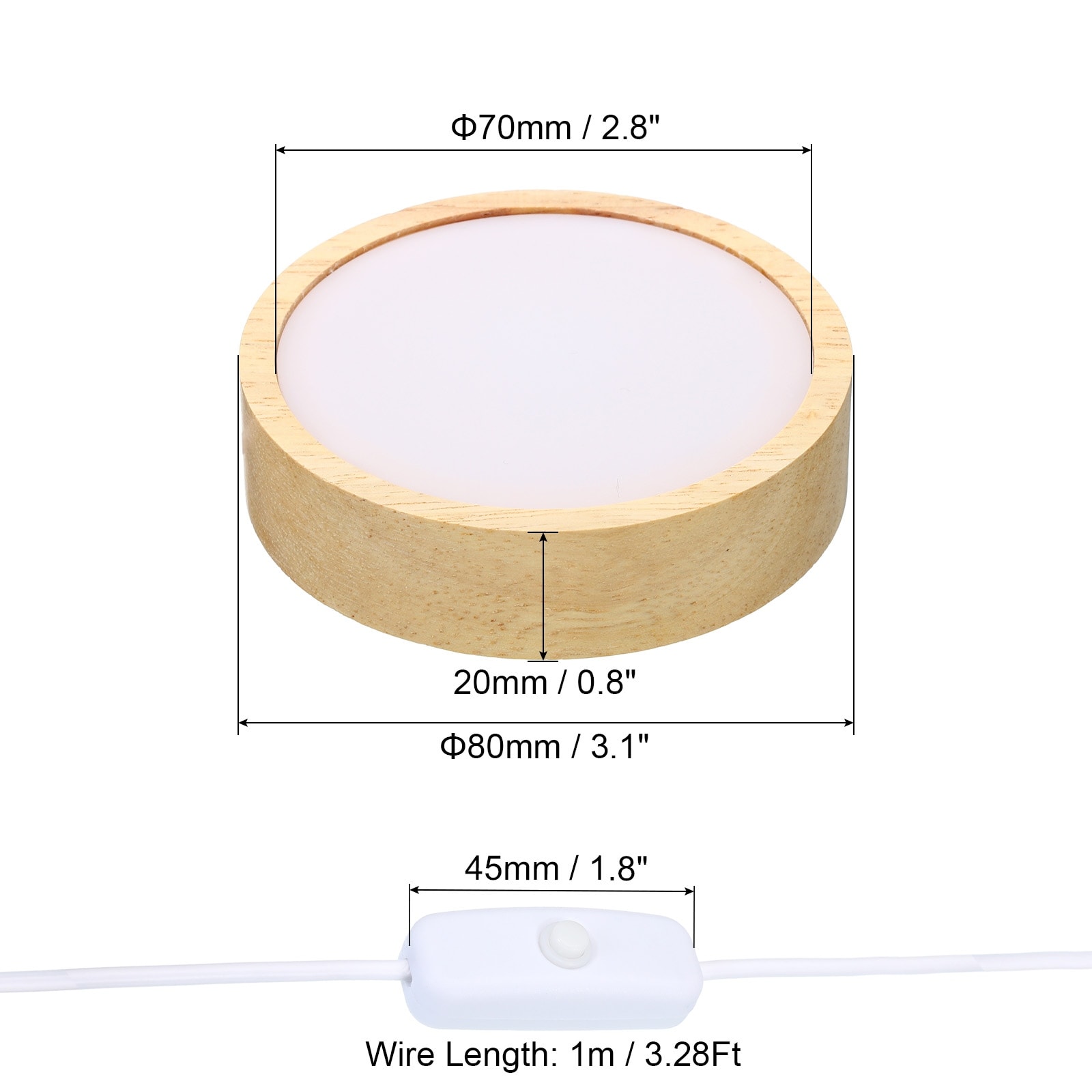 Wooden LED Light Base, Light Display Base Stand with Switch for 3D Crystal Glass Aroma Stone