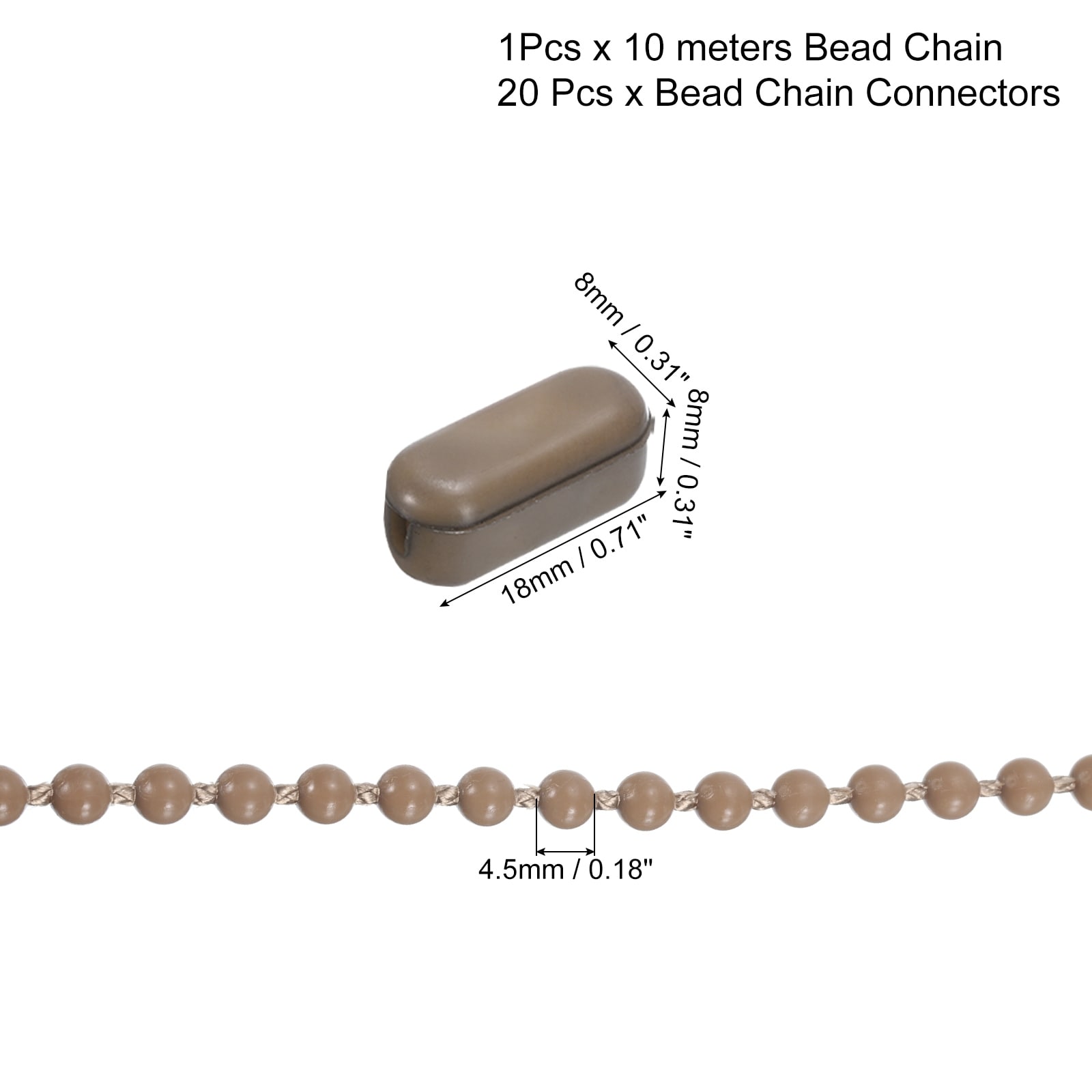 Blinds Bead Chain Cord Plastic Ball Beaded Chain with Chain Connectors for Bead Roller Blinds - 1 Set