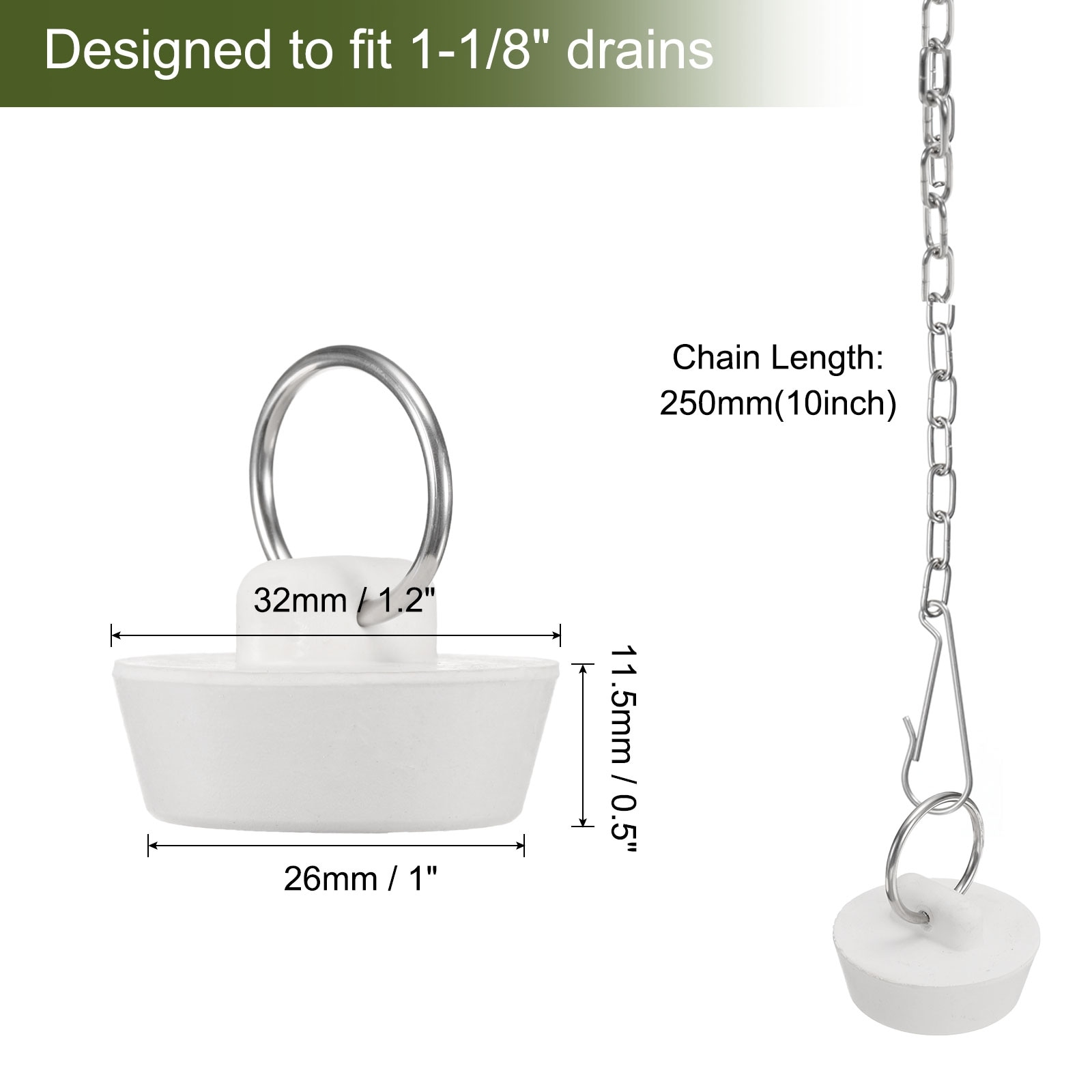 Kitchen Sink Drain Stopper, Bathroom Drain Plug with Pull Ring and Stainless Steel - White